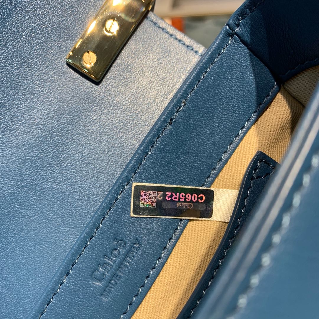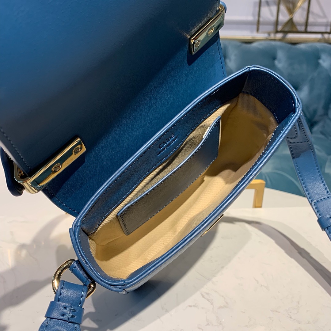 CHLOE MINI C BAG In Shiny & Suede Calfskin Gentle Blue CHC19US193 16.5 x 5 x 14 cm