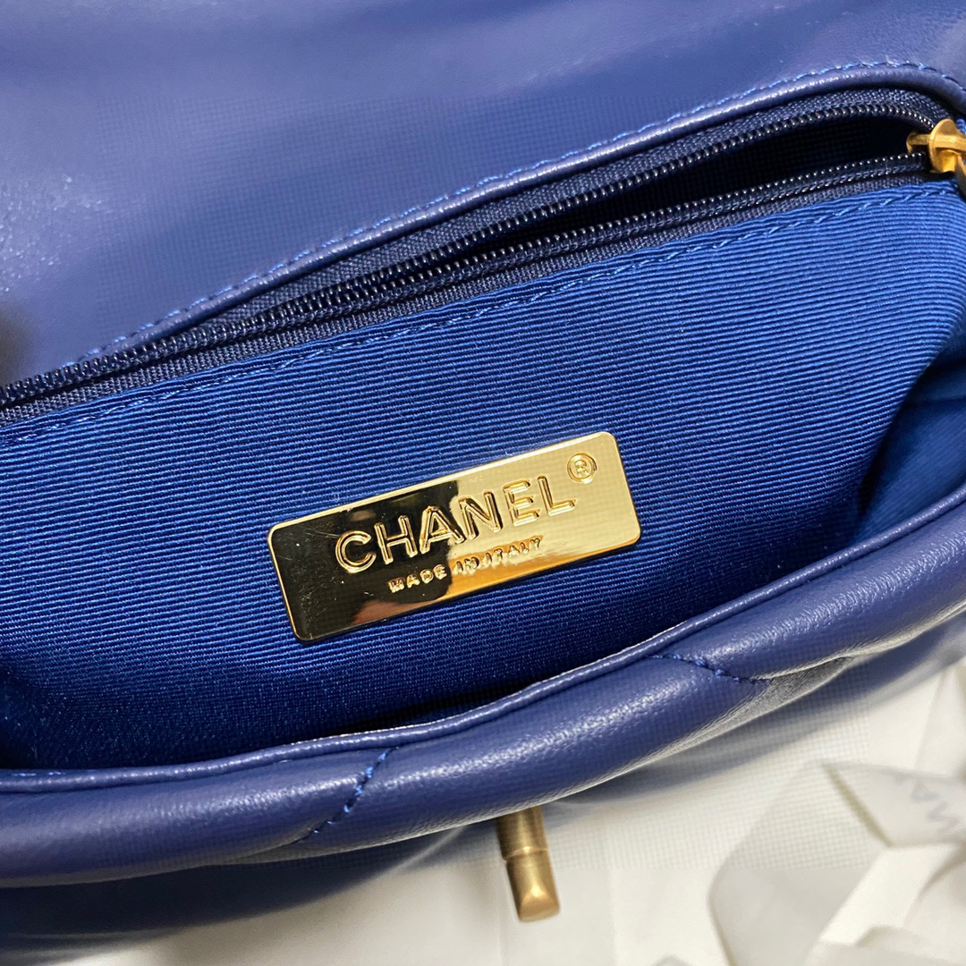 Ch**el 19 calfskin in dark blue-26×16×9cm