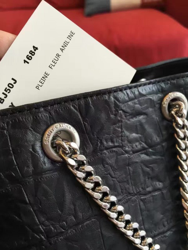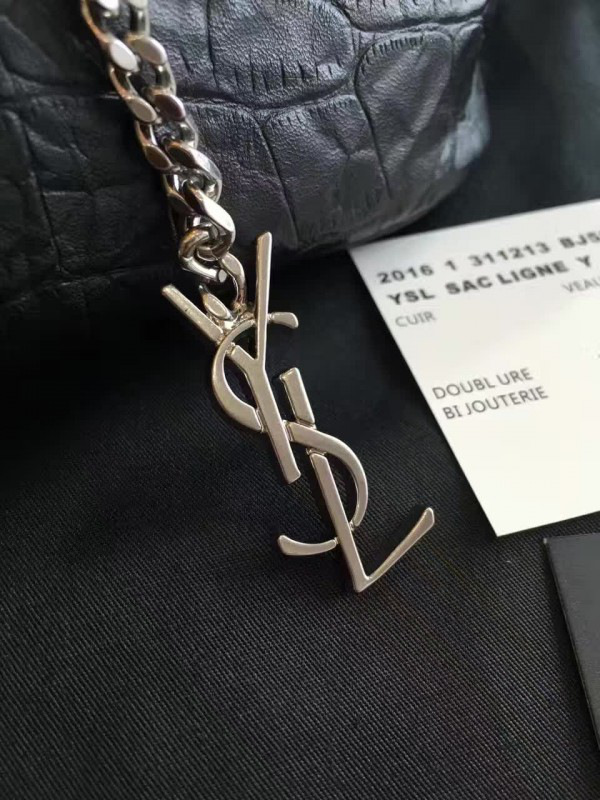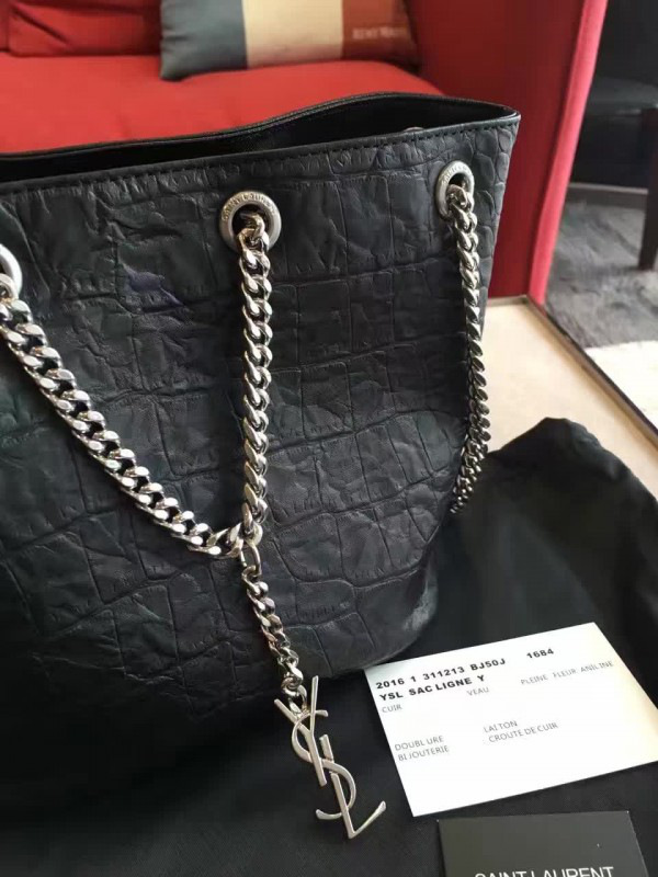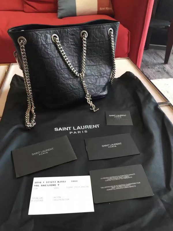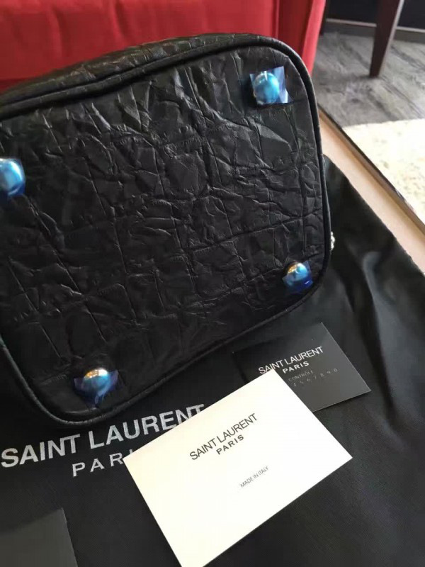 Y51 crocodile embossed leathe bucket bag black 5136 16cm x 16cm x 12cm
